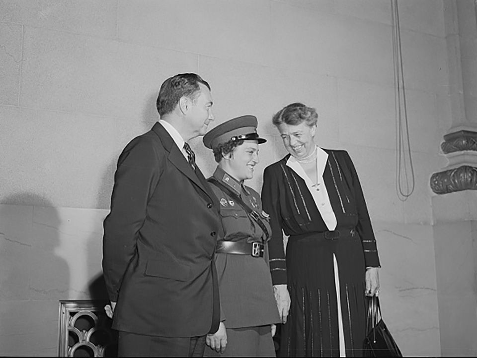 Justice Robert Jackson, Lyudmila Pavlichenko and Eleanor Roosevelt in 1942. Library of Congress