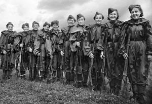 Russian delegates accompany Pavlichenko (right) on her visit to Washington, D.C. in 1942. Library of Congress.