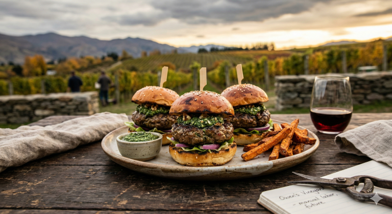 Lamb Sliders with Mint Pesto: A classic New Zealand staple. This earthy, hearty dish represents Owen’s years of manual labor in the vineyards, “blistering his fingers in the cold” to build a future.