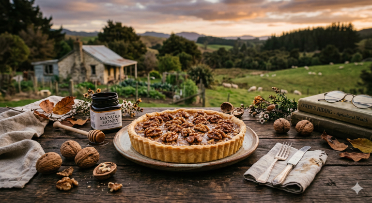Manuka Honey & Walnut Tart: Reflecting the agricultural richness of the region where Owen hid in plain sight.
