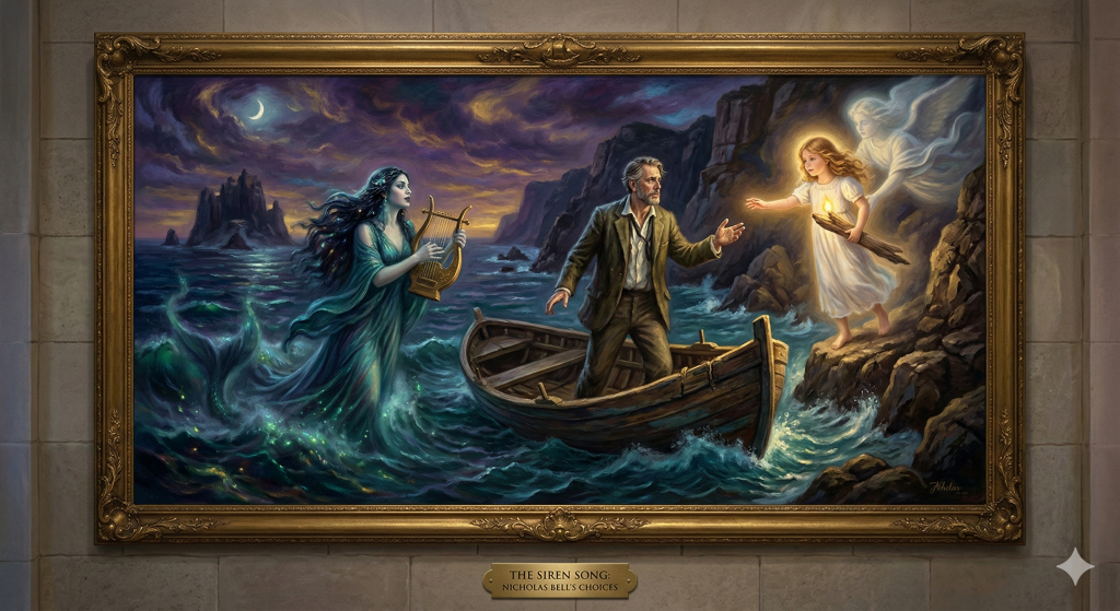 The Siren Song: In the original myth, the Sirens represent a temptation that leads to destruction. In the book, was Nicholas Bell’s life with “Frank” his siren song, or was it the dream of keeping Bailey safe?