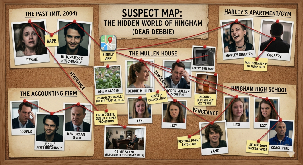 “Hutch” (Jesse Hutchinson): The apex of the suspect map. He is the original Rapist of Debbie. His dual life connects the Accounting Firm (as Jesse), Harley’s apartment (as “Cooper”), and Debbie’s buried past.