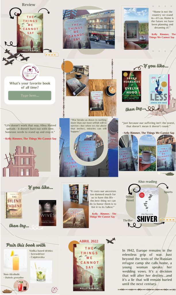 Slipping between Nazi-occupied Poland and the frenetic pace of modern life, Kelly Rimmer creates an emotional and finely wrought narrative that weaves together two women’s stories into a tapestry of perseverance, loyalty, love and honor. The Things We Cannot Say is an unshakable reminder of the devastation when truth is silenced…and how it can take a lifetime to find our voice before we learn to trust it.